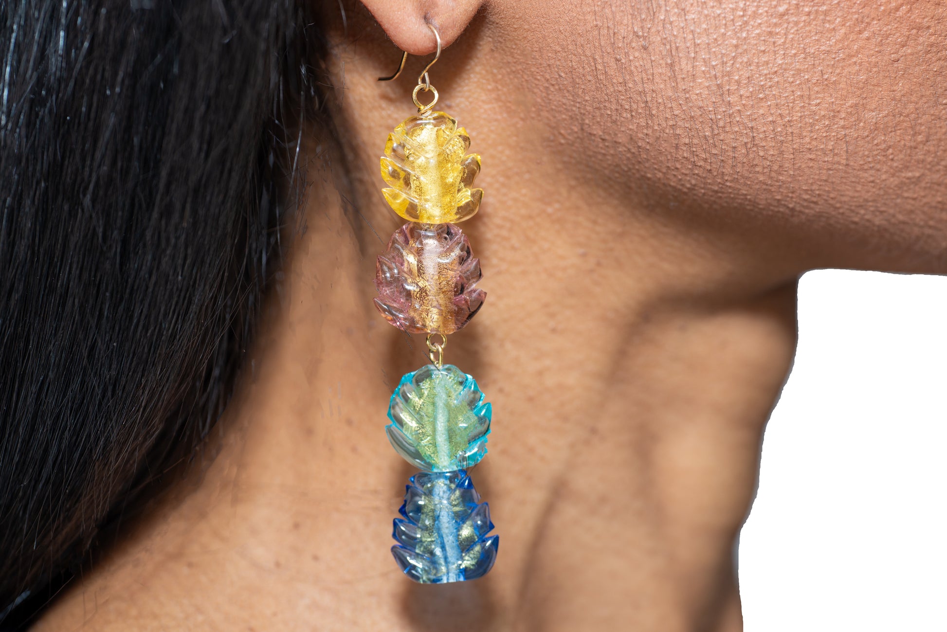 Glass cut leaf shaped beads with a gold accent.