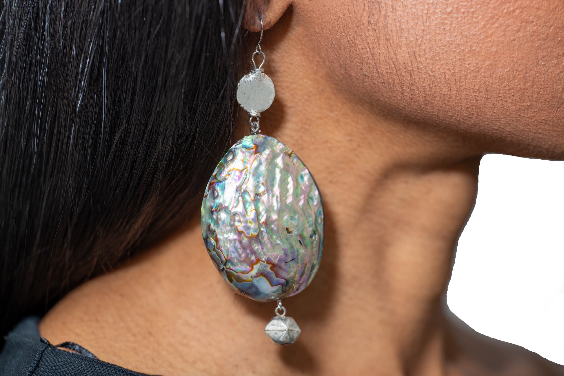 Abalone shell with silver colored accent beads. (Since this design contains natural components color variations will be present from piece to piece.)